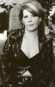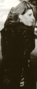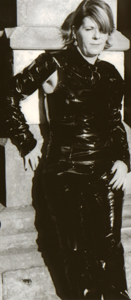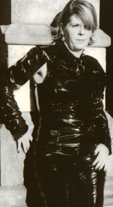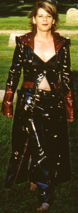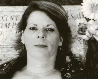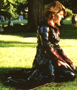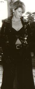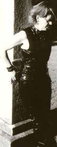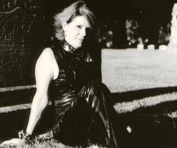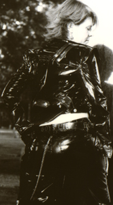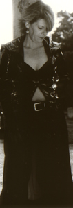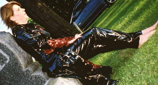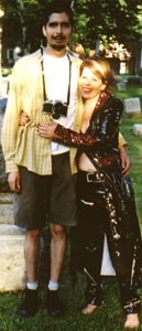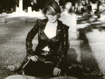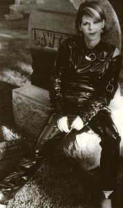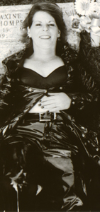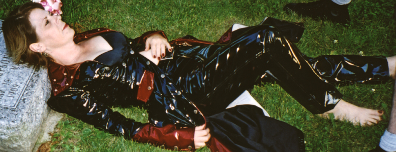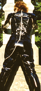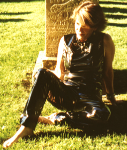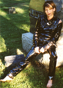 Kim wearing vinyl in the cemetery