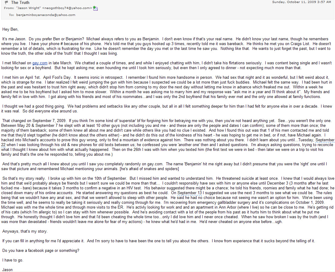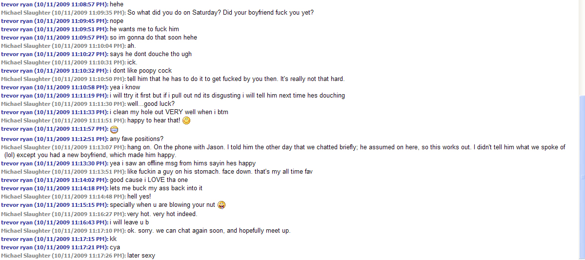 10:30 PM -11:17 PM: Trevor chats with "Collin / Michael' on Yahoo: