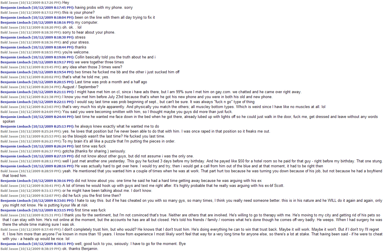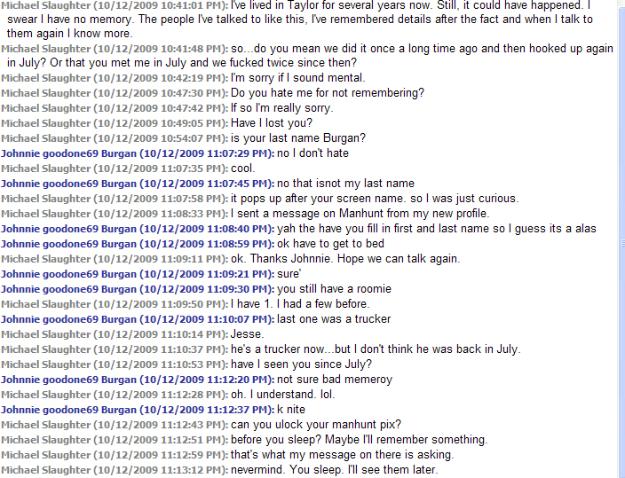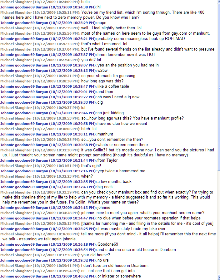 10:24 PM - 11:13 PM: I started a chat with another guy from Michael's chat list - this guy he fucked in July: