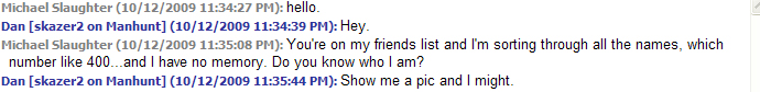 11:34 - PM: I started a chat with "Dan" from Michael's Yahoo list; they never hooked up though: