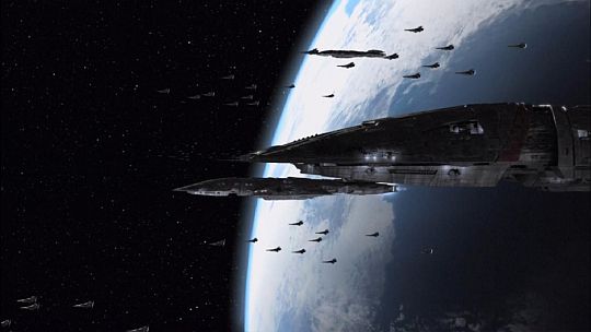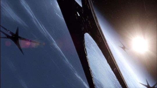 From a Latino Review Dot Com review of the DVD: "We were never told the details of the Cylons' ultimate plan to annihilate humanity when the series began. They made a dramatic reappearance after vanishing for forty years and with the destruction of the Twelve Colonies of Kobol, nearly wiped out the human race. Now with this new film all is revealed. The story opens 281 days after the destruction of the colonies during the season two episode 'Lay Down Your Burdens, Part II' where Brother John Cavil (Dean Stockwell) has just been exposed as a Cylon by another model of himself. This is the story of two Cavils: Fleet Cavil, who has infiltrated the surviving fleet as a Minster, hoping to break it from the inside, and Caprica Cavil, who gets involved with a group of resistance fighters led by Sam Anders (Michael Trucco) and begins to question whether the Cylon attack was justified. Flashing back to two days before the attack we finally get to see the destruction in full detail (thanks in part to an increased visual effects budget). Yet Battlestar Galactica is not about visual effects, but rather character and story. Graduating from supporting player to central character, Dean Stockwell puts in some brilliant work playing not one, but two versions of the same model. When revealed to be one of the Final Five in Season Four, Ellen Tigh (Kate Vernon) described him as a spoiled child, yet he is something far worse. Cavil yearns for mankind's destruction because they created the Cylons and though they are near perfect machines they are still limited. The Final Five are their creators as well yet no matter what they do as long as man survives they love them more. We get to see exactly what each of the five were doing when the bombs dropped and how Cavil infiltrated the fleet and was responsible for many of the dilemmas throughout Season One. Not only is there more than one Cavil, but as always multiple versions of Number Six (Tricia Helfer) including a raven haired one who is a bit of a floozy and ends up sharing his bed. It was Cavil who enlisted Number Six 'Shelly Godfrey' to accuse Dr. Gaius Baltar (James Callis) of being a traitor in the episode 'Six Degrees of Separation' in order to discredit him and put a stop to his construction of a Cylon detector. Another version of Number Four 'Simon' (Rick Worthy) is also introduced, only he is a medic aboard Galactica. With a human wife (who works as a mechanic with Chief Tyrol) and adopted daughter, he's quite content with his human family and tries to buy as much time as he can, knowing Cavil's efforts will inevitably kill them all. While there are an evil Cavil and a sympathetic Simon aboard Galactica, the reverse exists on Caprica. After being 'rescued' by Anders and his team when they assault a Cylon detail loading human bodies, Caprica Cavil begins to bond emotionally with these people. Another version of Simon is a part of the group and though they both attempt sabotage from within, Cavil is having second thoughts. Meanwhile about Galactica, we're provided with insight into what really made Sharon 'Boomer' Valeri (Grace Park) tick. Though she is a sleeper agent, who becomes aware of her mission and nature when given a special 'trigger' by Cavil, she too is questioning her role in his grand scheme, not realizing that he sees her as his pet project. It was indeed Boomer who sabotaged the water tanks in episode two 'Water' yet it was also her who found a new resource by episode's end. With many of their attempts at sabotage failing, Cavil grows frustrated and fears the possibility that his people are subconsciously screwing up their mission because they are all having second thoughts. Boomer only feels happy when she succumbs to her human programming, Simon wants to have a human family and even Leoben (Callum Keith Rennie) believes Kara 'Starbuck' Thrace has a destiny that will affect them all. The movie is definitely not for those unfamiliar with the show, because it feels like small missing pieces of a larger work that have been strung together. Many of the major cast members have not returned, (Mary McDonnell's President Roslin is no where to be found) but footage of them from the series has been incorporated into the story. There is more than one occasion of deja vu and small touches that force you to think back to how they fit into the story and make you want to watch the entire series again. It's also bolder and much grander than any individual episode including some of the most ambitious f/x images in the series beginning with the very first shot. I'm just sad that this is the final nail in the coffin of a dearly departed series that changed episodic television."
