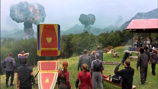 And this: "What we did was we took scenes that we already shot that you're going to recognize and then either add another angle, or add some dialogue. So if someone whispered something in someone's ear, which you never heard, we're actually adding that dialogue. So it's going to inform things on many different levels. So it's tricky. The important thing was I always wanted to differentiate Boomer from Athena, and doing some of the flashbacks (in "77 4x20 Daybreak, Part II"), when Tigh and Adama are saying 'You're washed up,' we all know who Boomer is now, but having to go back and remember that she wasn't always that way and to kind of go back to her innocence. Her at the beginning was different than Athena at the beginning; Athena was way more knowing, and she was, like, lying right off the top because she didn't care. Whenever they go back they always want to make something kind of interesting, and put a new piece there. Oh, I almost said it out loud! They had this little piece that was a little prop which would help you sort of see the mechanism how Boomer went in and out of her sleeper mode, and since it was never discussed before or revealed to us, I had my own thing all made up, and then when that started happening, that's when it really screwed it up. I think that was more confusing, to make that make sense after all of the stuff that I put on top already."