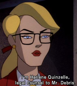 Harvey Dent almost recognizes the unmasked Harley Quinn after a similar encounter 5 episodes before this ("Joker's Favor") Joker's origins are at last referenced
