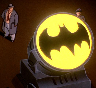 The Bat-Signal is used.