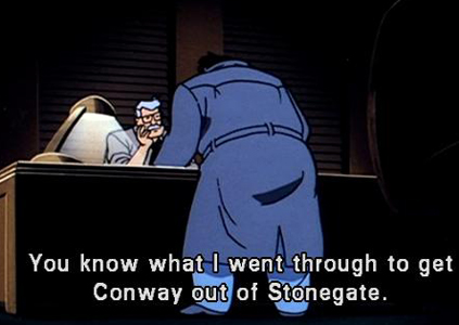 During Jazzman's incarceration in Stonegate Penitentiary he speaks to another unnamed inmate who bears a striking resemblance to Spider Conway, a character given more development in "Vendetta". I chose to pair the two episodes to help reinforce this tenuous and possibly not intended bit of continuity.
