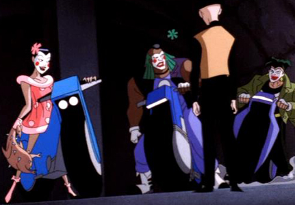1st appearance of a different gang of Jokerz (criminal clowns inspired by the original Joker) than had appeared previously in the JLU episodes; these new Jokerz are not always named but several recur throughout the series.