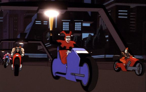 A new rendition of the theme to Batman: The Animated Series is heard.