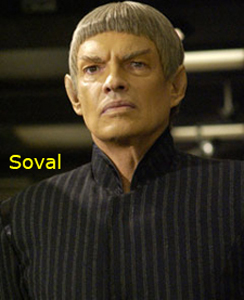 Vulcan Ambassador Soval returns for another appearance during the debriefing scenes. He was last seen in an alternate universe in Season 3 (060 "Twilight"). He returns later this season (083 "The Forge").